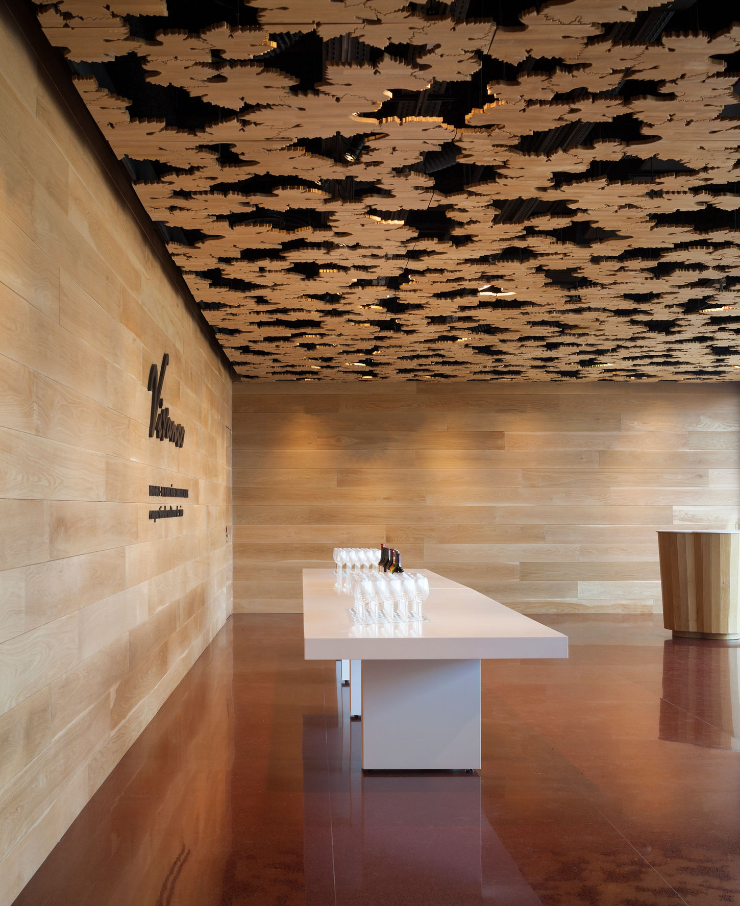 Nuestra intervención consiste en la ampliación de la enotienda, incorporándola al recorrido natural del museo. La reforma responde al espíritu de una arquitectura reconocible en un modo directo y natural. Es muy importante que la gente pueda encontrar un camino por el que poder acceder a la arquitectura, un camino para disfrutar de ella. Pensamos que nuestra actuación tiene que tener una cierta cualidad explícita; ha de estar explícita su idea y ésta tiene que estar explícitamente resuelta y que muestre el carácter de la obra. Para ello, las hojas de tempranillo en celosía de madera envuelven el conjunto a la vez que le confiere una imagen en sintonía con la tradición vernácula. Nos permite la adición de las diferentes partes y su articulación.